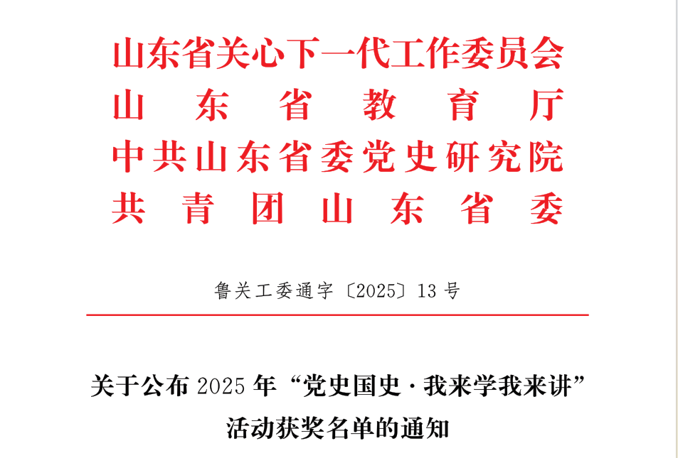 近日,山东省关心下一代工作委员会、山东省教育厅、中共山东省委党史研究院、共青团山东省委联合主办的2025年“党史国史·我来学我来讲”活动公布获奖名单。淄博师范高等专科学校马克思主义学院教师表现突出,荣获多项奖励。